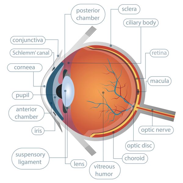 Ocular melanoma commonly develops in the cells of the middle layer of the eye (uvea). The uvea has three parts and each can be affected by ocular melanoma: The iris, which is the colored part in the front of the eye. The choroid layer, which is the layer of blood vessels and connective tissue between the sclera and the retina at the back of the uvea. Ocular melanoma can also occur on the outermost layer on the front of the eye (conjunctiva), in the socket that surrounds the eyeball and on the eyelid.